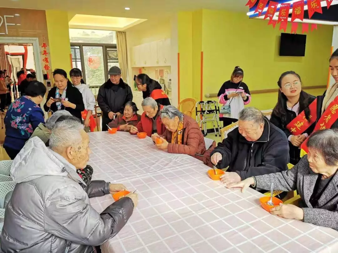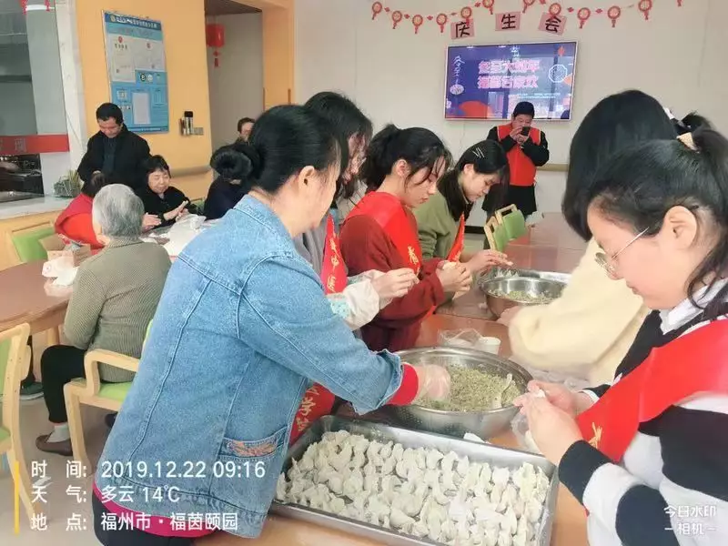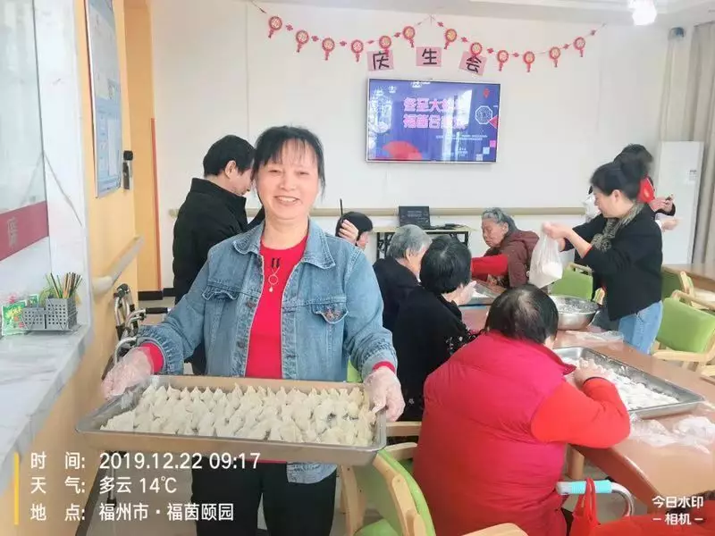 當一碗碗熱騰騰的湯圓和水餃端上飯桌時,大家笑得像一朵花,津津有味地品嘗著自己的勞動果實,都露出了喜悅和期待的笑容。 在品嘗美味的同時,再一次零距離地體驗了傳統民俗帶來的快樂。非常感謝金牛山社區的伙伴和福建中醫藥大學中醫學院志愿者協會的同學們,陪福茵頤園的爺爺奶奶們度過一個歡樂祥和的冬至。