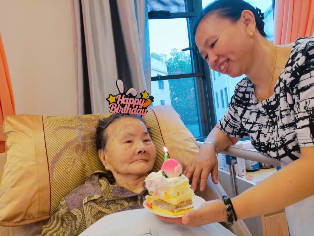 福茵頤園在這個特殊的日子,與合作企業福州凈達達家政、蜜拓蜜健康管理中心一起為長輩們慶祝,不僅有老人身體酸痛如何有效緩解的分享,同時祝福壽星們教師節和生日快樂,祝愿長輩們晚年生活幸福安康,并且現場貼心地為長輩們進行簡單的舒緩按摩。